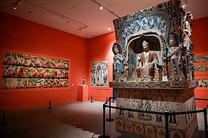 “文明的印记:敦煌艺术大展”以“经典敦煌艺术”再现千年石窟艺术的不朽神韵,以“藏经洞专题”展示敦煌学的博大宏阔,以“1940年以来的敦煌艺术手法与精神”展现敦煌艺术的现实活力。共展出文物、临本、现当代艺术家创作计280余组件,在展品数量上创造记录的同时,兼具经典性与时代性,从而为学术界和公众奉献出一个结构多元、内容丰 富、古今集合的艺术大展。